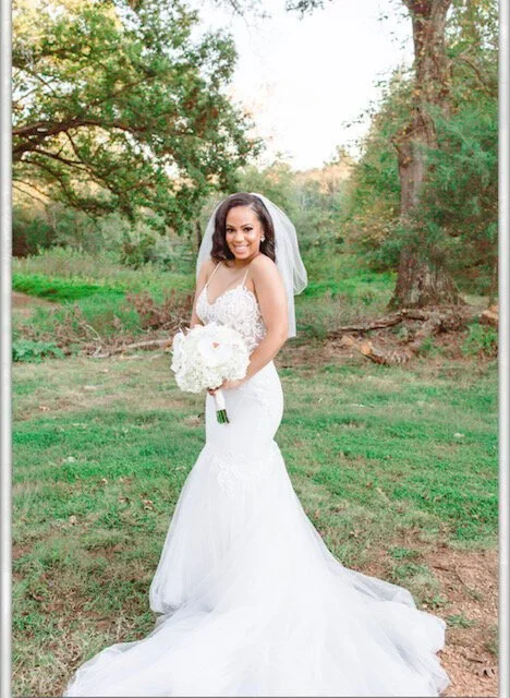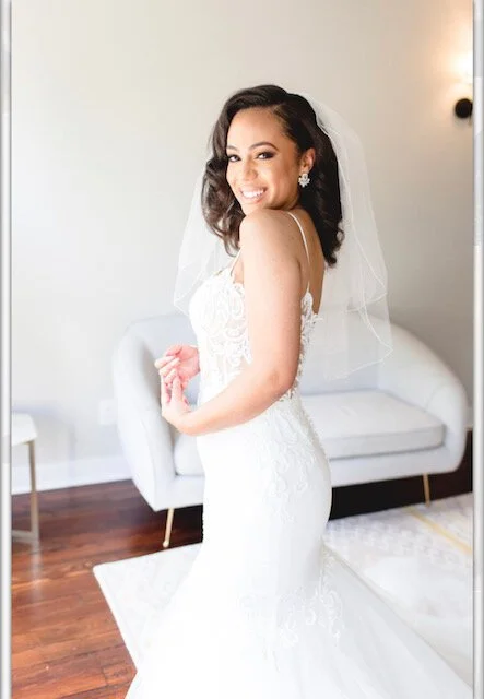 We first met Olivia in November of 2019 at a Raleigh-Durham, North Carolina bridal expo. She came to visit our North Carolina bridal shop in downtown Durham, NC in December 2019 with her mom, aunt and best friend. We knew then she was a sweetheart! Olivia selected a beautiful Sincerity by Justin Alexander mermaid gown with beaded appliques and a full tulle skirt.