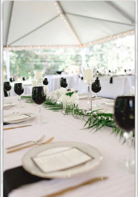 Olivia and Tiraq chose black and gold with touches of green as their wedding colors. The black and gold paid homage to Tiraq’s fraternity, Alpha Phi Alpha. The theme was a mix of Harlem Nights with Art Deco elements from the 20s and 30s on the programs and menus.